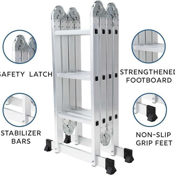 يمكّن نظام المفصلات الفريد متعدد المواضع هذا السلم من التحول بسهولة إلى العديد من التكوينات المختلفة استخدامه ب 7 طرق