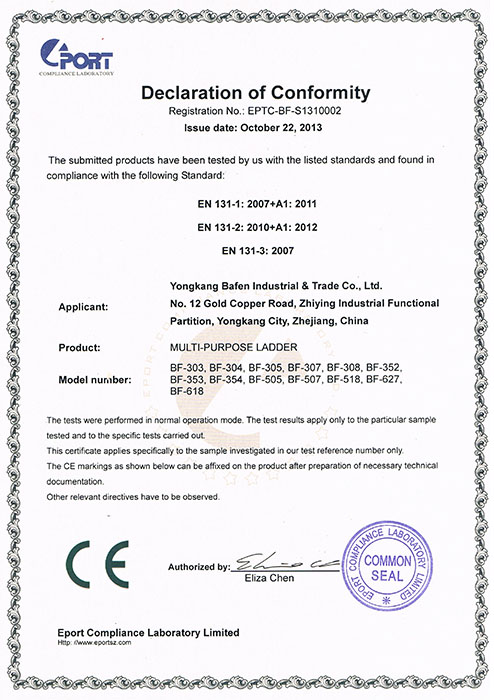 السلالم السقالة لدينا معتمدة معايير الأمن والسلامة الاوربية بشهادة اعتماد EN 131